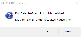- Es besteht keine Verbindung zum RA-MICRO-Datenlaufwerk (z. B. Netzlaufwerk getrennt oder Netzwerkproblem).