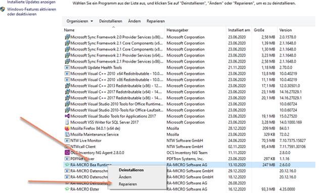 über das Kontextmenü rechte Maustaste " Reparieren" wählen.